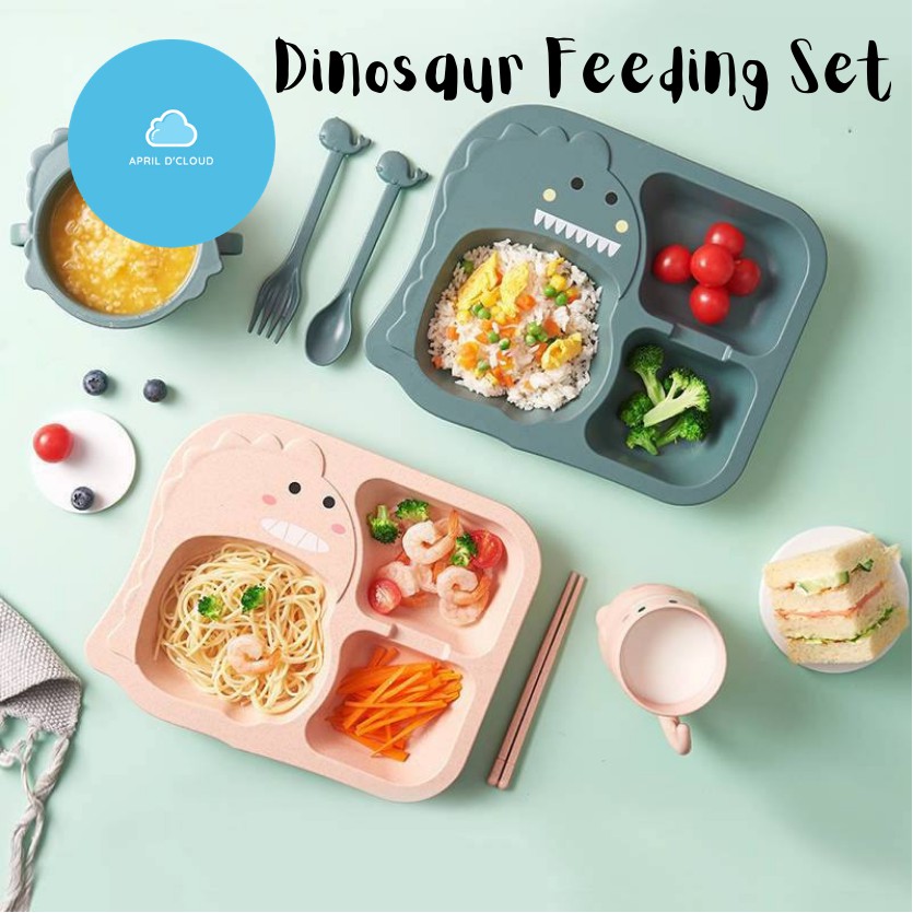 Buckwheat Dinosaur Baby Feeding Set Makan Bayi Dinosaur Plate Fork Spoon Cup Shopee Malaysia